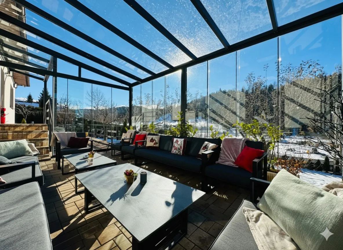 Élvezd a lélegzetelállító kilátást egész évben a nyitott teraszról vagy az üvegfalas, zárt teraszról.